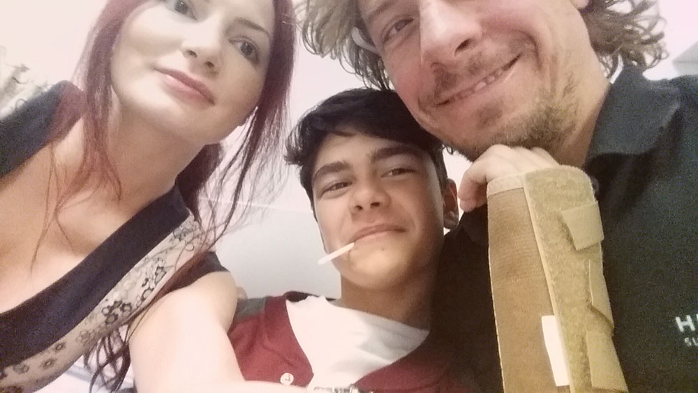 Am avut si un mic accident la volei 🙁 insa nimic grav. Dudu este si mai simpatic cu ghips si e mai carismatic pentru fetele din tabara. 🙂