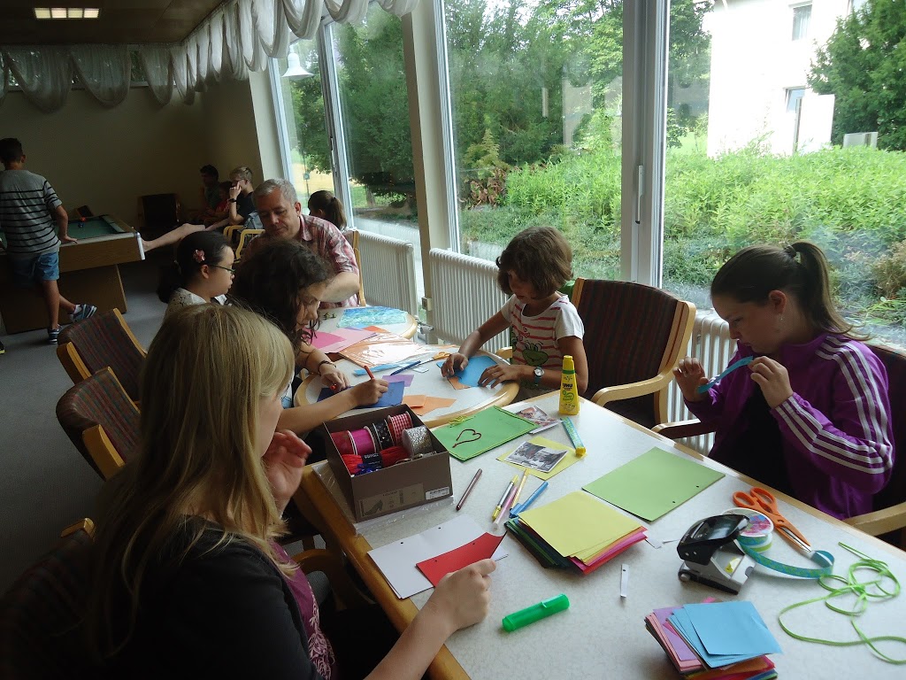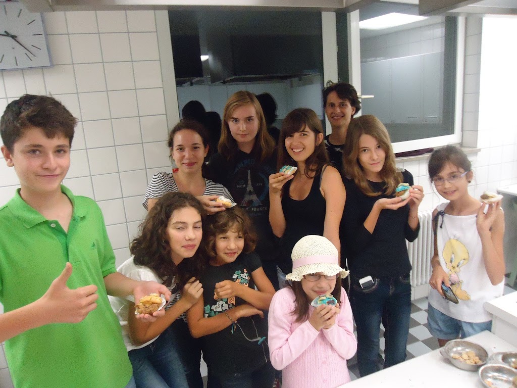 Toate activitatile sunt supervizate si organizate de catre staff, grupele sunt mixte iar limba de vorbire este doar germana. Este momentul care le ofera posibilitatea de a-si face noi cunostinte cu care pot comunica in germana, precum si de a lega noi prietenii. Astfel, dupa pranz cativa copii s-au hotarat sa se plimbe cu bicicleta si anume Anisia, Matei, Dani si Mihnea, baietii luand apoi parte alaturi de Anastasia la primul curs de gatit, unde au pregatit biscuiti cu crema de ciocolata, pe care au avut si ocazia sa-i savureze dupa cina. Marc si Radu s-au odihnit insa pe seara s-au alaturat fetelor in bucatarie, unde au pregatit briose, iar Nora, Catinca, Andra, Carina si Miruna au preferat desenul pe matase. A fost o miscare inspirata intrucat activitatile outdoor au fost surprinse de ploaia care ne-a urmarit inca de dimineata. Ilinca si Anastasia au ales sa participe pentru inceput la un atelier de lucru manual unde au invatat sa impleteasca bratari, iar Maria a preferat sa se odihneasca putin pentru a participa apoi la atelierul de gatit alaturi de majoritatea fetelor. Cei mari (Mihnea, Matei, Alexandra, Ioana si Teodora) au dorit initial sa participle la turul cu bicicleta, insa au renuntat ulterior, intrucat nu ramasesera suficiente pentru toti si au inlocuit turul cu jocul de carti.
